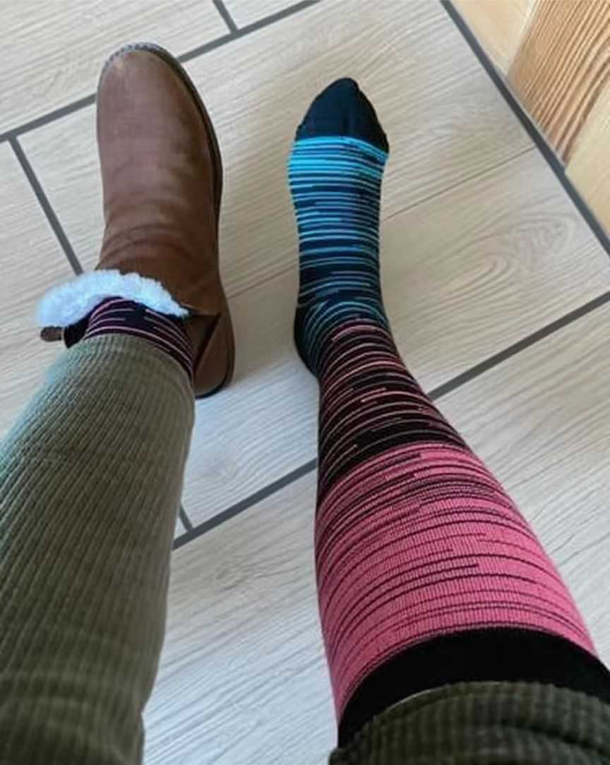 They’re absolutely perfect! I no longer suffer from aching or swollen ankles at the end of the day. I already owned the plain socks and decided to try the striped ones for a fun change—and they’re just as wonderful!