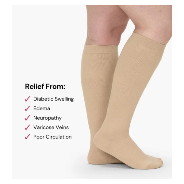 Everstride compression socks use a 15-20mmHg graduated compression to combat swelling.