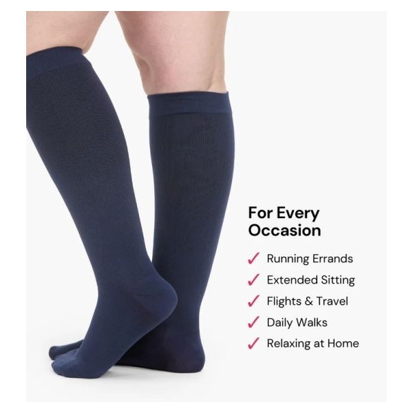 Our socks gently wrap around your calves and stimulate healthy circulation without feeling too tight. Helping to prevent potential health issues such as blood clots while providing all-day comfort.